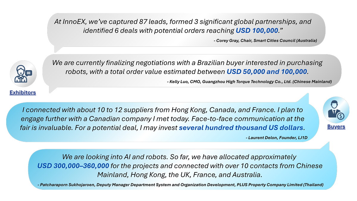 Co-organised by the Innovation, Technology and Industry Bureau (ITIB) of the HKSAR Government and the Hong Kong Trade Development Council (HKTDC), InnoEX is a premier business platform dedicated to next-generation smart solutions, cutting-edge technologies, and disruptive innovations. Don’t miss your chance to connect with Government, Industry, Academia, Research, Investment leaders and drive B2B, G2G, G2B, and B2G partnerships.